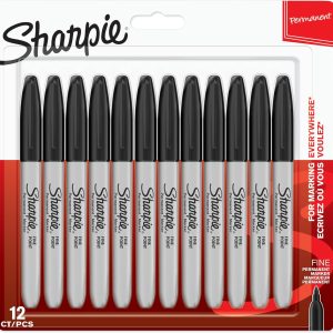 Sharpie Permanent Markers | Fine Point | Black | 12 Count