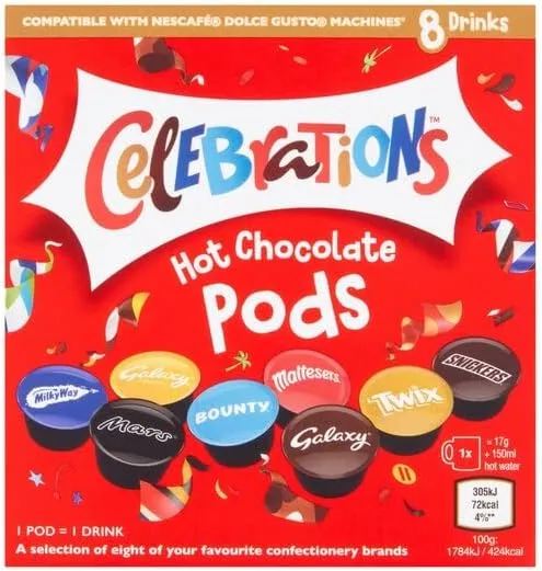 - 8 Drinks 1 Pod = 1 Drink A selection of eight of your favourite confectionery brands Suitable for vegetarians
